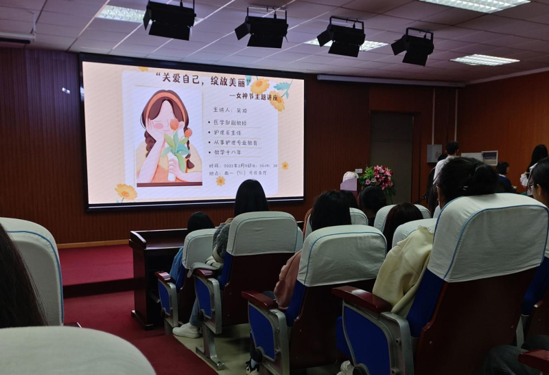 3月9日18:30-19;30,医学部副教授、护理系主任吴琼老师在南一(2)号报告厅开展讲座来为学生们答疑解惑,讲座以“关爱自己,绽放美丽”为题,为女孩们普及对女性方面的知识,告诉女性有着多重的身份,是女儿、是母亲、是妻子、是女职员,但更需要的身份是自我!这个特别的讲座,教授呼吁大家,要关爱女性健康,远离疾病,保持良好的心态,乐观面对生活,要不断增强自我保护意识,对自己的健康负责,享健康生活,做品质女孩。