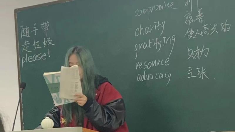 “刘雨琪是一位富有责任心的学习委员。”会计学1班学生王译浠说道。刘雨琪领读带有口音,但她克服了发音障碍,主动购买音响带读,并刻苦练习,现在大家的发音都很标准。在英语课上,会计学1班还特别被老师表扬了口语水平有很大提高。