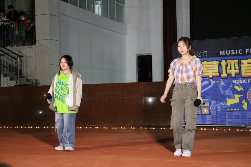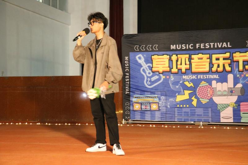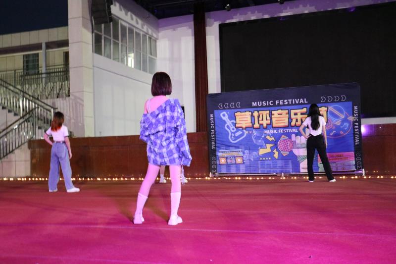 当日18时30分,操场上很多学生早早来到现场,表演节目的学生们在后台积极准备,舞台设备负责人认真调试设备。19时,4位主持人依次上台,宣布草坪音乐节活动正式开始。一首开场曲《指纹》让现场沸腾起来。街舞《Tomboy》张力十足,舞者们活力四射;歌曲《低空飞行》温柔动听,引得大家静静聆听欣赏;歌曲《彩虹》把大家带到了演唱会现场,气氛一下子达到了高潮;拉丁《light of youth》更是一会大胆狂野,一会又典雅温润,让学生们惊喜连连……