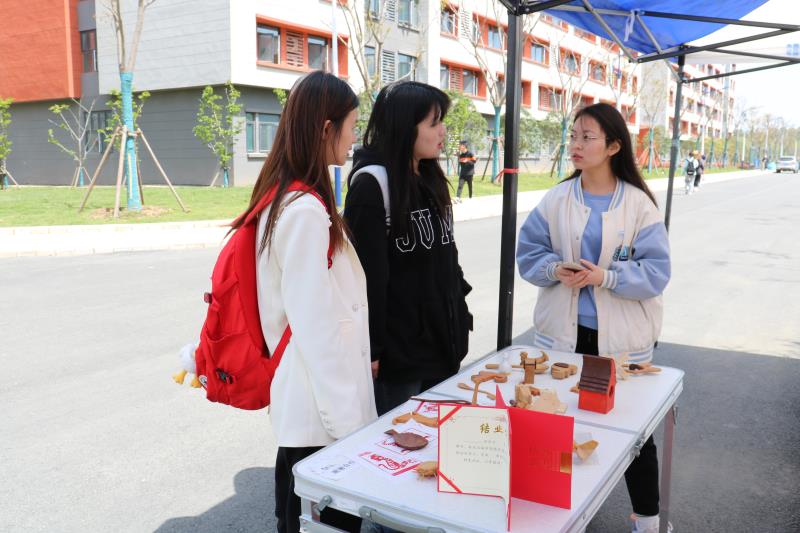 新闻网讯(记者许晶晶)4月7日,从我院红安校区五栋教学楼前面的空地上传来制作木质工艺品的声音。这是我院艺术与设计学部教师张静携非遗文化创意工作室成员在宣传传统木艺文化,开展非遗文化创意工作室招新活动。