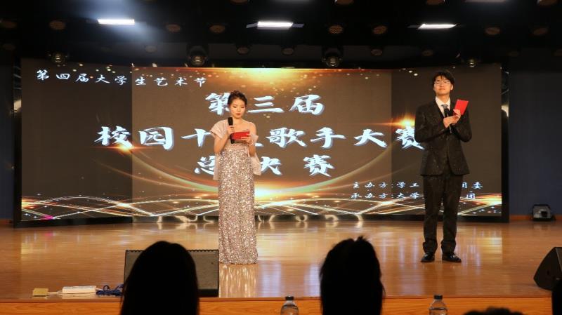 新闻网讯(实习记者程婧 摄影吴冬丽 蔡海燕 李晨茜)4月22日晚,第四届校园十佳歌手决赛在大学生活动中心举行。经过角逐,信息工程学部2022级电商1班(S)学生蒋子傲荣获冠军;外语学部2021级英语1班学生费文杰获得亚军;医学部2022级高级护理4班(Z)学生孟欣彤获得季军。