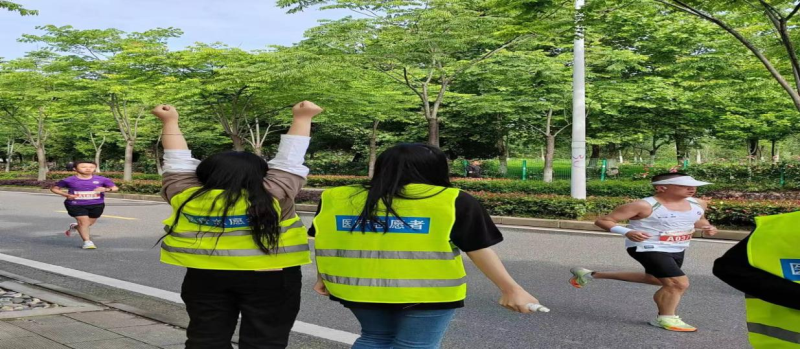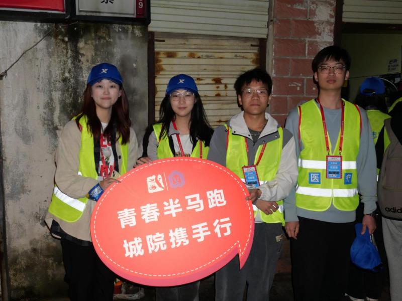 5月7日,曙光还没到达地平线,我院210名志愿者就已经到达比赛现场,按照现场工作人员的指令,开始赛前准备工作。凌晨的街道从远处看去规整而宁静,一个个身着志愿者服饰的大学生们有序忙碌其中。“虽然比赛规模大,参与医疗保障工作难度高,但我坚信大家团结一心,一定会克服各项困难圆满完成任务。”院级负责人、医学部2020级本护1班学生李荟颖说道。对于首次参加这种大规模志愿者活动的学生,李荟颖更多的感触是被大家强大的集体荣誉感和执行力所感染。“虽然工作任务重,无暇休息,但大家都精神抖擞地为比赛积极准备着,谁也不叫苦、不喊累,这就是青春的力量。”