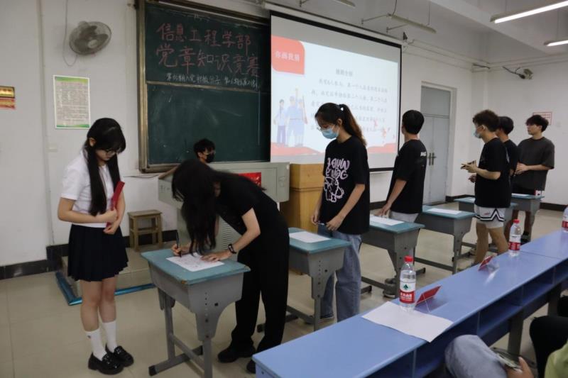 新闻网讯(通讯员 付湘玉 王苗苗 摄影 余丽雯)信息工程学部大学生党建会于5月15日中午举办党章知识竞赛,该学部第55期入党积极分子和第16期发展对象组建5支队伍参加比赛。该学部党总支副书记、副主任王鹏,综合科科长、党建会指导教师汤轶,学生一支部书记梁宇,学生二支部书记尹可昕,学生三支部书记李军(线上参会),学生四支部书记范文婷现场观赛。红安校区积极分子观看赛场转播。