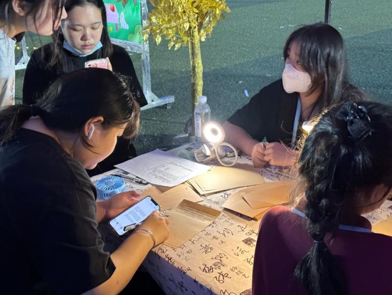 本次活动内容丰富多彩,由“创意文化拍卖场”“落雁邮局”“心愿交互中心”三个环节组成,活动现场,风车在半空中摇曳,灯光昏暗而柔和,吸引着学生们前来观看,将活动气氛推向高潮。
