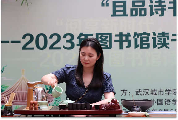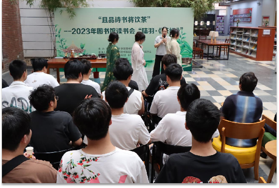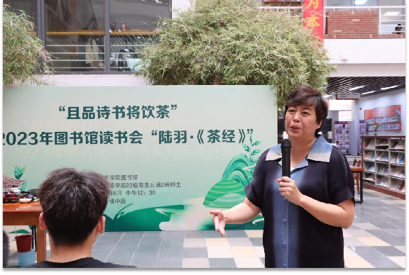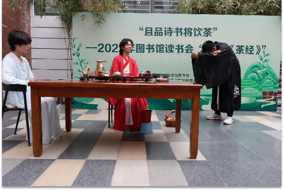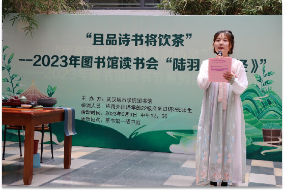 新闻网讯(记者 徐贤琪)又是一年茶又绿,且将新火试新茶。6月6日,学院在图书馆一楼中庭举行且品诗书将饮茶——2023年图书馆读书会“陆羽与《茶经》文艺表演”。副院长刘丹出席,应用外国语学部主任杨文秀、副书记胡蓉,图书馆直属党支部书记石顺利和各部门主任,应用外国语学部22级商务日语2班全体师生参加活动。