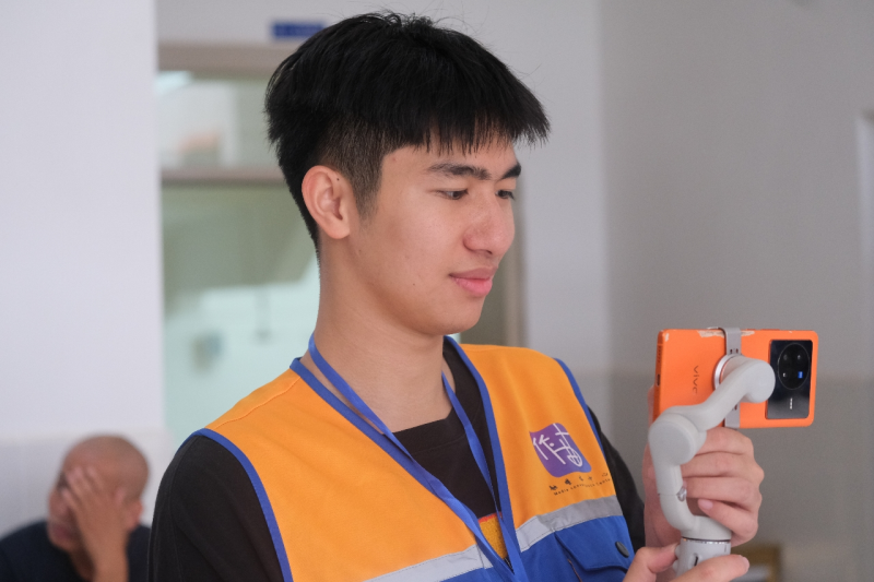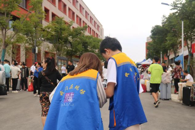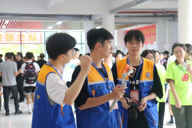 迎新现场随处可见身穿蓝橙色马甲的学生记者,他们手持专业设备,有的用相机拍下照片,四处找寻有价值的新闻点,传播校园正能量;有的用手机录下视频,将视频进行剪辑编辑,记录难忘时光;有的用电脑撰写稿件,用文稿传播校园故事,定格新生入校第一天的美好瞬间。