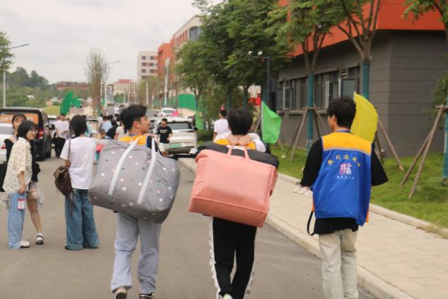 迎新现场,学生记者们不只是宣传员更是志愿者。在忙着做宣传工作的同时,他们也没有忘记帮助有困难的新生指路和搬行李,忙碌的身影从未停歇。外语学部2021级英语6班学生张佳鑫在迎新现场耐心地给新生指路,为新生搬运行李。他说:“这是我第5次参加迎新活动,我觉得这是一件有意义的事情。虽然我的主要任务是拍照和宣传,但是我也想做一些力所能及的事情帮助新生,为他们答疑解惑也让我很开心和满足。”