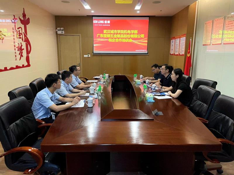 参观结束后,3位辅导员与坚朗五金的领导进行了深度交谈。会中坚朗五金人力资源中心招聘副总监卢业政介绍了公司发展历程、岗位需求、校企合作现状,并从人培方案、奖学金设立、教学计划植入、专业课程设置、职业规划、到岗实习等多方面具体讲述了今后对订单班的发展计划,并特别肯定了武汉城市学院机电工程学部学生具有扎实的专业知识和较强的实践能力。机电工程学部李尧老师从目前学部的专业设置、人才培养、实习情况、就业率提高等多方面向企业进行了介绍,并对坚朗五金的企业文化和发展愿景表示高度赞赏,希望在未来的发展中能够继续深化校企合作,为学生的职业发展打下坚实的基础。坚朗五金表示后续也会对武汉城市学院机电工程学部甚至包括其他学部的相关专业增加新的实习和就业岗位。