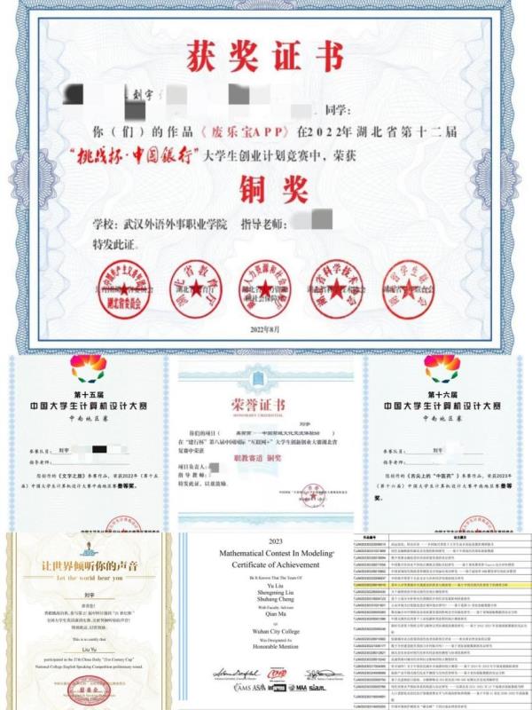 “参与比赛是人生旅途中一份无比珍贵的经历,能够遇见许多无法忘怀的瞬间,结识一路并肩前行的朋友,听取慧眼独具的导师的教导。”刘宇说。他从大一开始陆续参加各种比赛,荣获“挑战杯创业计划大赛”湖北省铜奖,“互联网+”大学生创新创业大赛湖北省铜奖,计算机设计大赛1项中南地区二等奖,2项中南地区三等奖,美国数学建模大赛国际二等奖,全国统计建模大赛湖北省一等奖,“我梦见——楚天创客”铜奖,发表了1篇EI论文等奖项。
