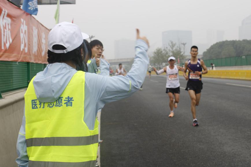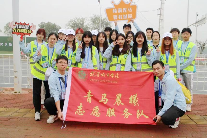 新闻网讯(记者许晶晶)10月28日上午,2023年“奔跑吧·光谷马拉松”在武汉东湖高新区鸣枪开赛,来自国内外的16000余名参赛者齐聚武汉参加赛事。我院青马晨曦志愿服务队组织298名志愿者投入21-36公里沿途的医疗服务当中,配合医护人员和组委会完成对马拉松选手的紧急医疗工作。