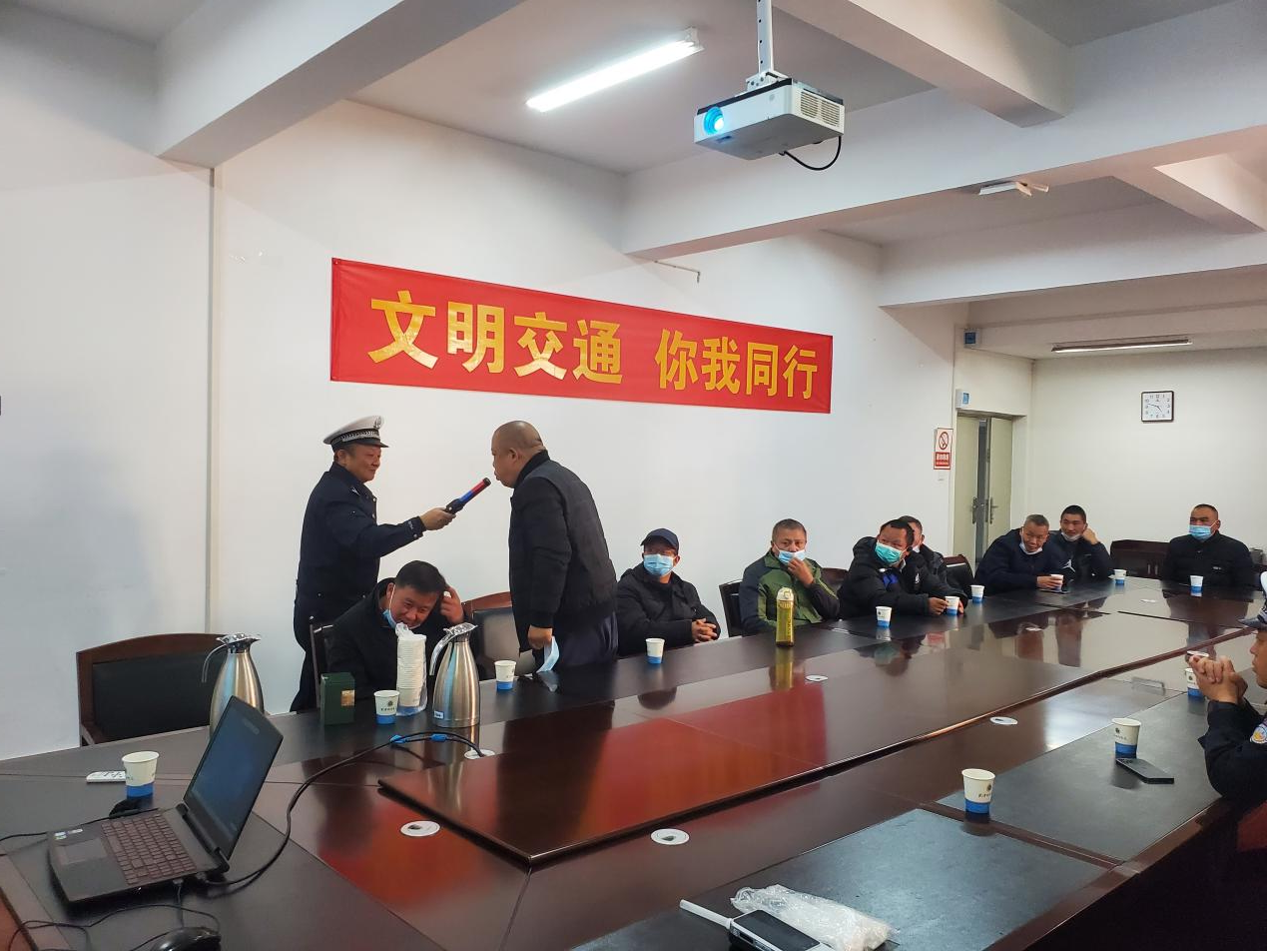 安全出行教育讲座在全体通勤车司机进行酒精测试检查后圆满结束。