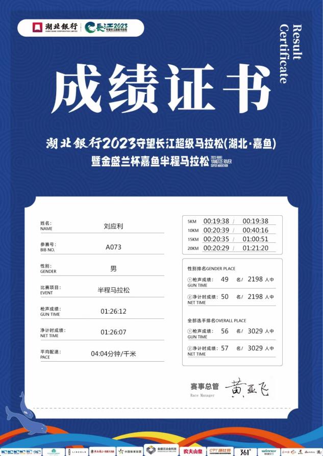“我喜欢跑步,它让我找到自我。风吹在我脸上,那一刻我只属于自己!”提到喜欢跑步的原因,刘应利笑起来,眼里有了光。自从爱上跑步,他就热衷参加大大小小的马拉松比赛突破自我。在今年5月7日的孝感马拉松中,刘应利报名参加半马,在5000名半马选手中取得154名的成绩。在10月28日举办的2023奔跑吧·光谷马拉松,刘应利积极报名,但遗憾的是他没有中签。刘应利并没有因此放弃,他立马报名参加2023守望长江超级马拉松。比赛前夕,刘应利和往常一样,晚上有空就到操场上练习跑步,一跑就是十几公里。他笑着说:“我喜欢大汗淋漓的感觉,跑完步人更加轻松。”11月5日参赛时,他又一次突破自我,在3029名半马选手中,取得第57名的成绩。