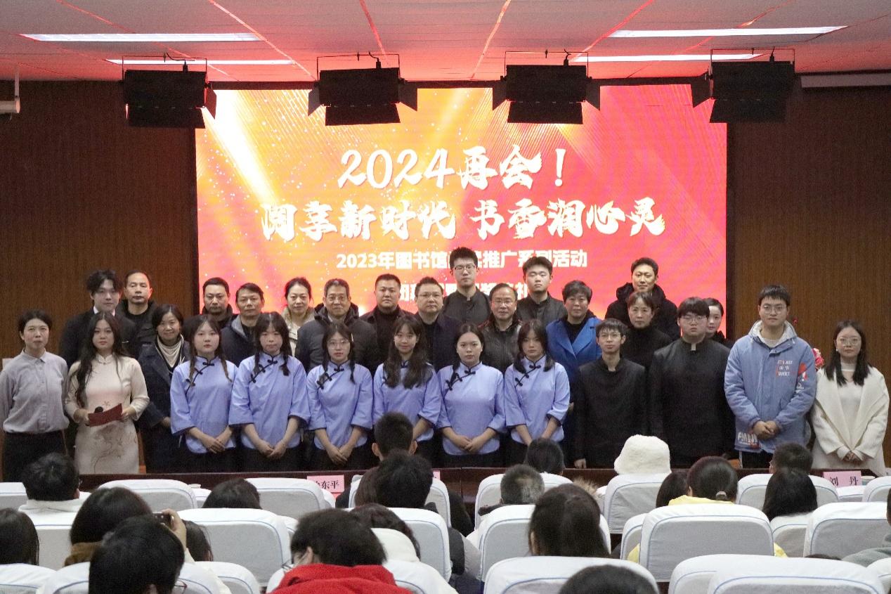 新闻网讯(通讯员石秀丽 记者范玄浩 实习记者王晨煜)12月15日中午,“阅享新时代,书香润心灵”2023年图书馆阅读推广系列活动闭幕式暨颁奖典礼在南一(2)号报告厅举办。党委书记肖军、副院长徐东平、刘丹出席活动。 相关职能部门负责人、各学部主任、各学部分管学生工作的党总支书记、副书记、图书馆全体馆员、获奖师生及各学部学生代表参加。
