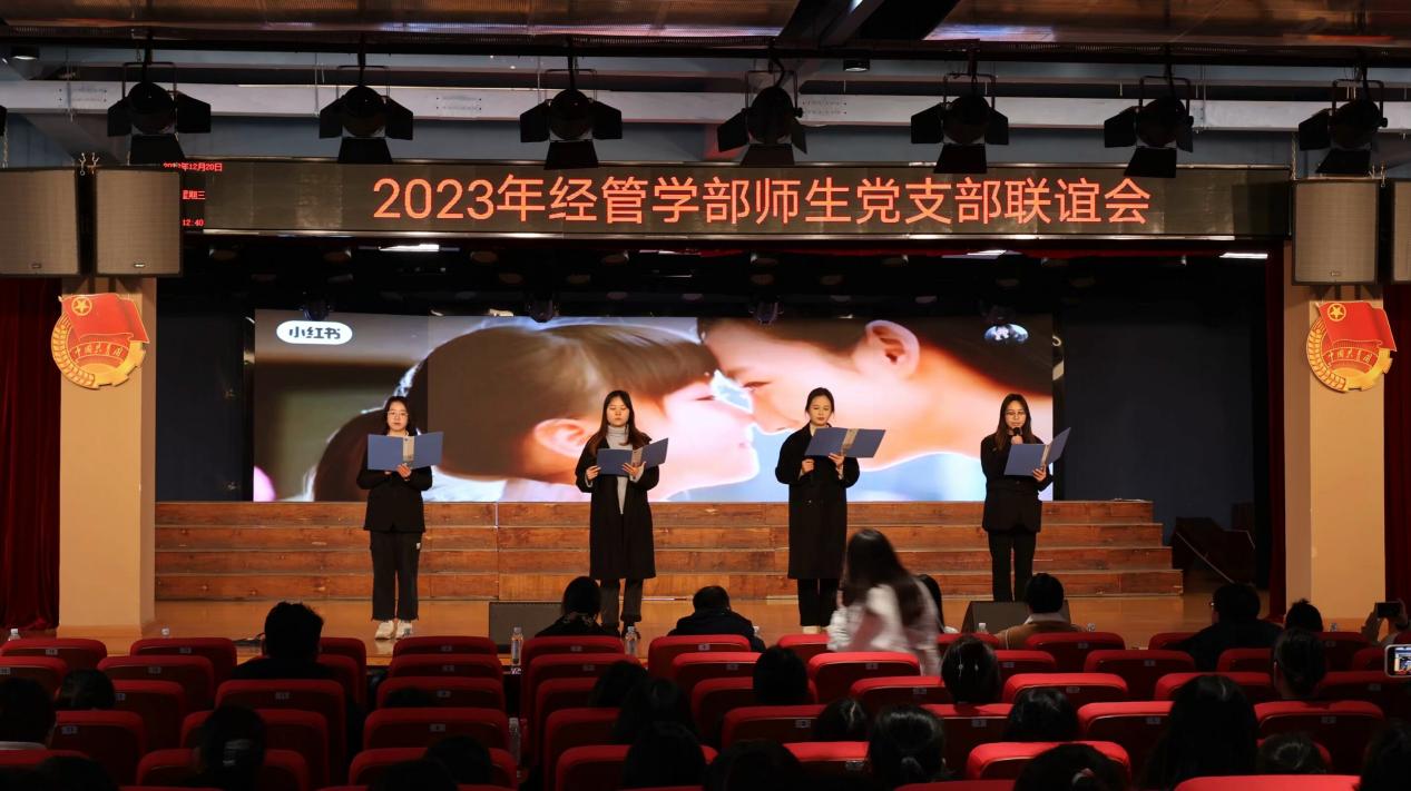 新闻网讯 (通讯员梁芳瑜 摄影杨耀辉 冯珂 梁芳瑜)经济与管理学部6个党支部于12月20日中午在大学生活动中心成功举办了一场盛大的师生党支部联谊会。此次活动旨在增进师生之间的友谊,加强彼此之间的交流与合作,为学部的和谐发展注入新的活力。活动现场气氛热烈,师生们欢聚一堂,共同度过了一个难忘的党日活动。