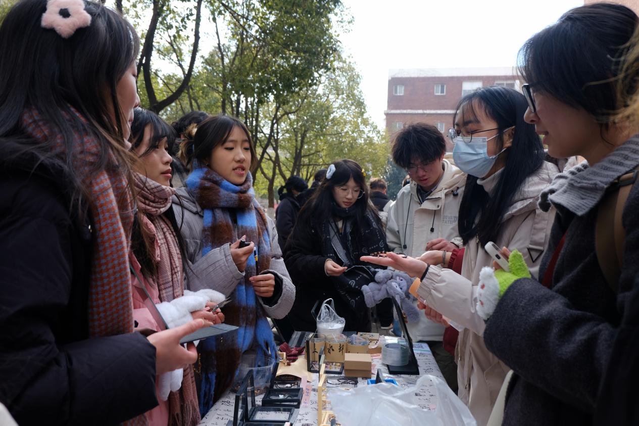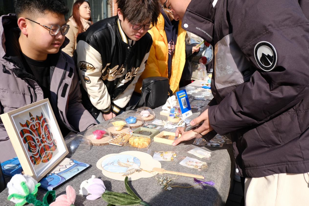 新闻网讯(记者寇礼冉 摄影张佳鑫 范玄浩 寇礼冉 吴赛雅)12月21日,我院艺术与设计学部成功举办第五届创意市集,活动在东湖校区实验实训楼前举行。本次创意市集由2022级视觉传达设计1、2、3班主办,所有市集展售作品都是学生们在本学期《设计构成》课程中的产出,3个班课程作品线上线下销售总额达13785元,市集现场销售额达6781元。