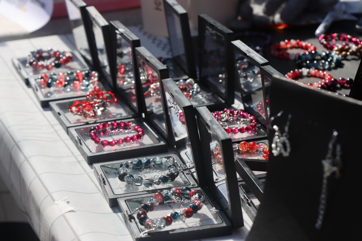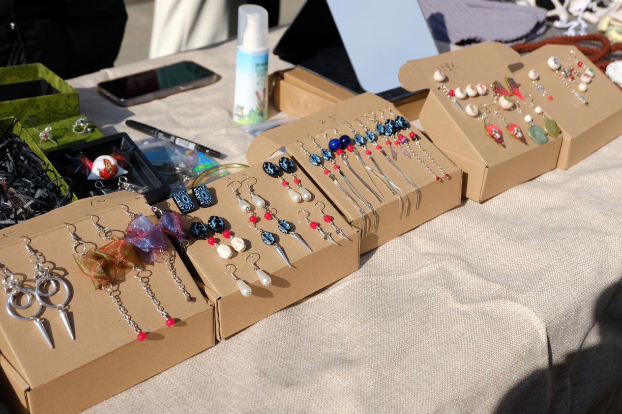 21日上午,2022级视觉传达设计1、2、3班的学生们根据前期市集活动策划,在实验实训楼前有序地做着准备工作,各摊位“主理人”结合作品特点,构思展品的摆放,以便有效吸引消费者的目光。市集作品形式丰富,品类多样,有毛线编织的圣诞挂件、新中式风格的饰品设计、传承非遗掐丝珐琅技艺的实用设计,以及融合荆楚文化的创新作品。这些作品设计有的造型独特,有的美感拿捏,有的实用有趣,有的紧跟潮流,带给实际消费者满满的惊喜。