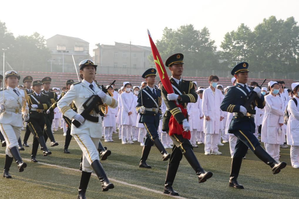 升旗仪式后,在罗健的带领下,参加仪式的全体师生举起右臂,面对鲜艳的五星红旗庄严宣誓,郑重承诺:“遵守护士的职业道德规范,热爱专业,勤勉好学,忠于职守,兢兢业业,将毕生精力奉献给护理事业。”诚挚的宣誓声在校园久久回响,一字一句都代表着学生成为一名白衣天使的决心。