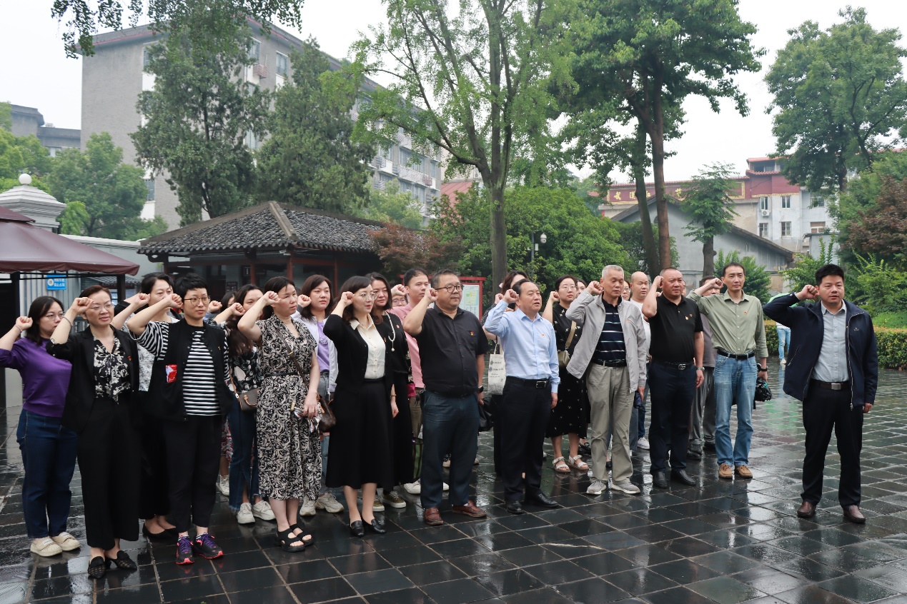 在毛泽东同志曾主持的中央农民运动讲习所前,全体党员干部在党委副书记杜磊的引领下,庄严肃穆地齐聚,共同重温入党誓词。大家举起右拳,以坚定有力的宣誓声,表达不忘初心、砥砺奋进的信念和决心。