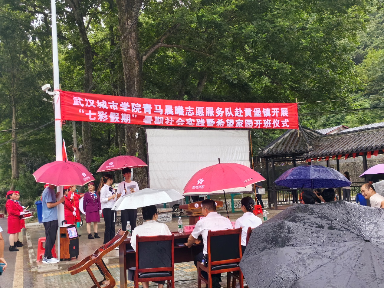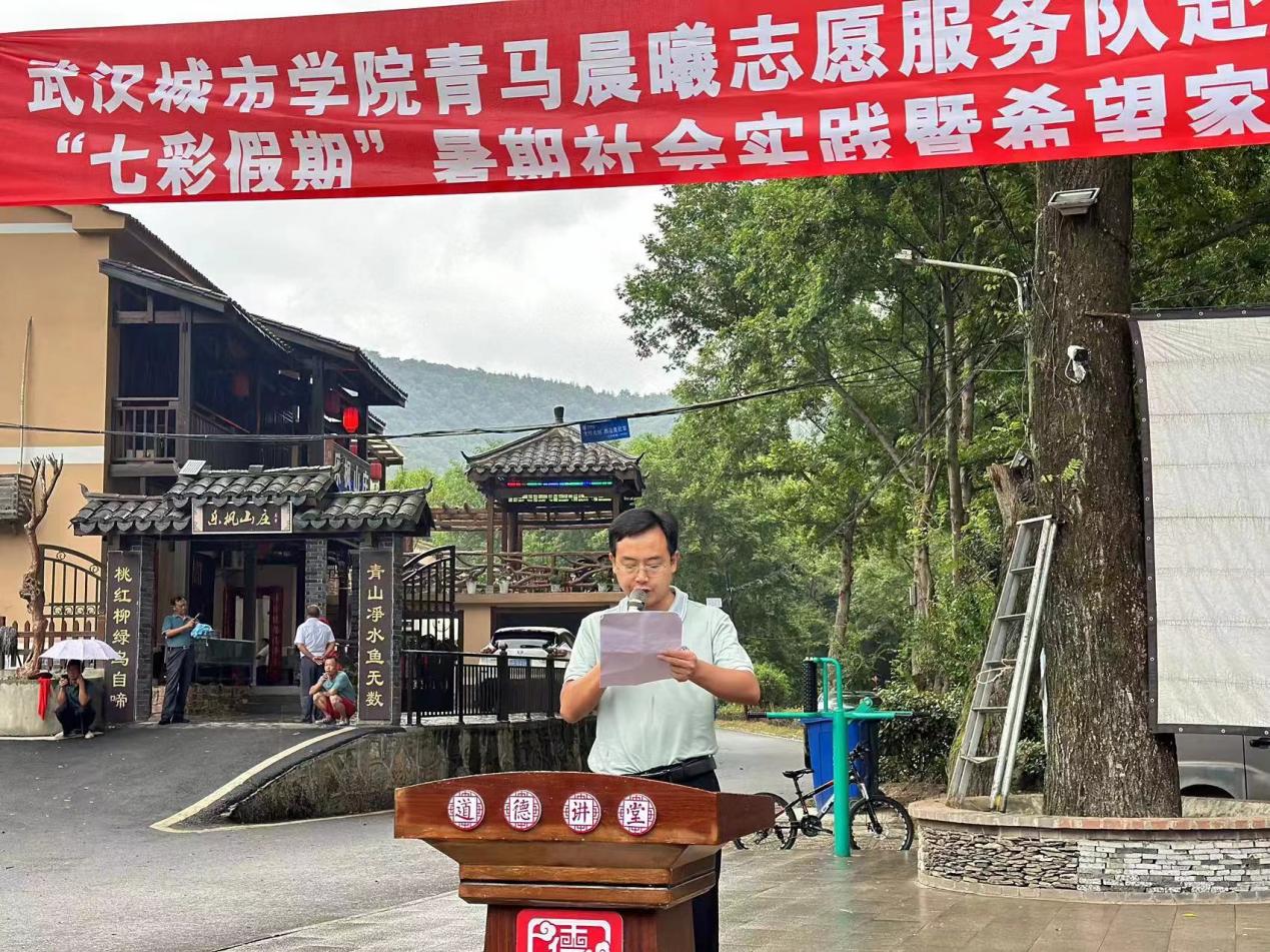 新闻网讯 (实习记者 杨思怡)7月1日,学校青马晨曦志愿服务队赴襄阳市保康县黄堡镇寨湾村,举行“七彩假期”暑期社会实践暨希望家园开班仪式活动。黄堡镇镇长孙兆强、保康县县团委李红昌、武汉城市学院城建学部主任梁宇鸣、驻村工作队书记张磊和寨湾村党支部书记王乐彬参与了本次仪式。