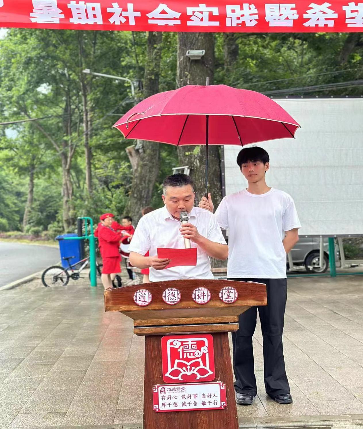 为庆七一,广场上播放红色电影,也为此次开班仪式画下圆满句号。暑期社会实践活动是学生们施展才华、磨练意志、服务社会的重要途经,学校志愿服务队将继续深入基层,用行动践行青春誓言。
