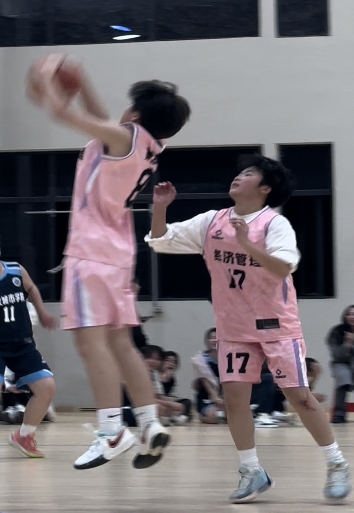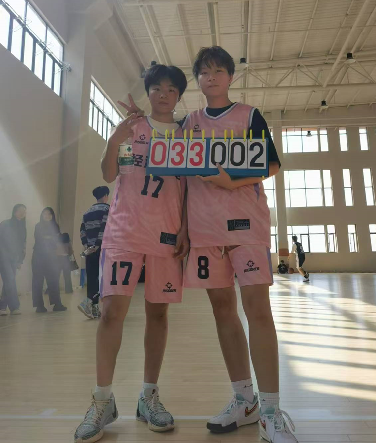 而这来之不易的胜利,也离不开她们在赛场外的不懈努力。作为队内仅有的两位有篮球基础的人,魏维嘉与陈锞共同担当着队长的责任,在每一次比赛的前一天,都会和助教一起,组织队员们进行训练。所有人一起跑步热身,然后两个人分开教队员们上篮,运球,进行30分钟的定点投篮训练,一次次为队员们捡起的球,也是她们队伍一点点凝聚起来的必胜之心。