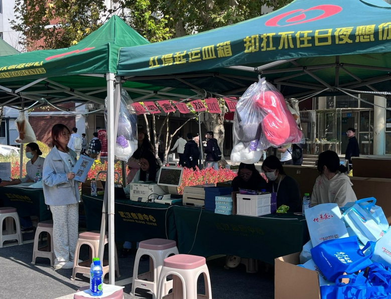 新闻网讯(实习记者 杨玉娥)为了弘扬人道主义精神,推动无偿献血公益事业的发展,我校外语学部于11月7-8日在学子餐厅旁举行成功举办了一场校园献血活动。