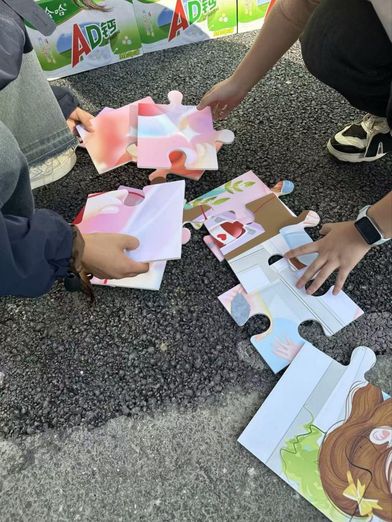 现场布置得温馨而有序。在活动现场,师生们纷纷排起长队,有序地进行登记、体检、献血。献血车上,同学们脸上洋溢着笑容,他们用实际行动诠释着“奉献、友爱、互助、进步”的精神。一些首次献血的同学虽然略显紧张,但在医护人员和志愿者的细心照顾下,他们很快放松下来,顺利完成献血。除此之外,还设置了趣味拼图活动,吸引着同学们的加入。