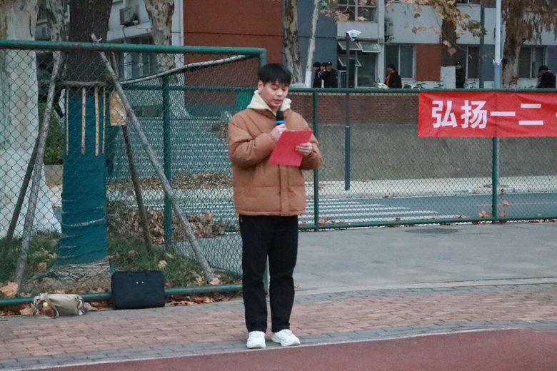 国家奖学金获得者李维坤讲话:“让我们铭记‘青,取之于蓝而胜于蓝’,不断超越自己,勇担责任,奋斗不止。站在这片国旗下,我们不仅要牢记‘家国情怀’,更要时刻谨记‘少年强则国强’,在这片土地上留下属于我们的足迹,让祖国因我们而更加光辉灿烂。‘会当凌绝顶,一览众山小’李维坤希望学弟学妹们都以此为目标,脚踏实地,勇敢追梦,始终保持对祖国深沉的热爱与无尽的奉献,携手走向更加辉煌的明天!