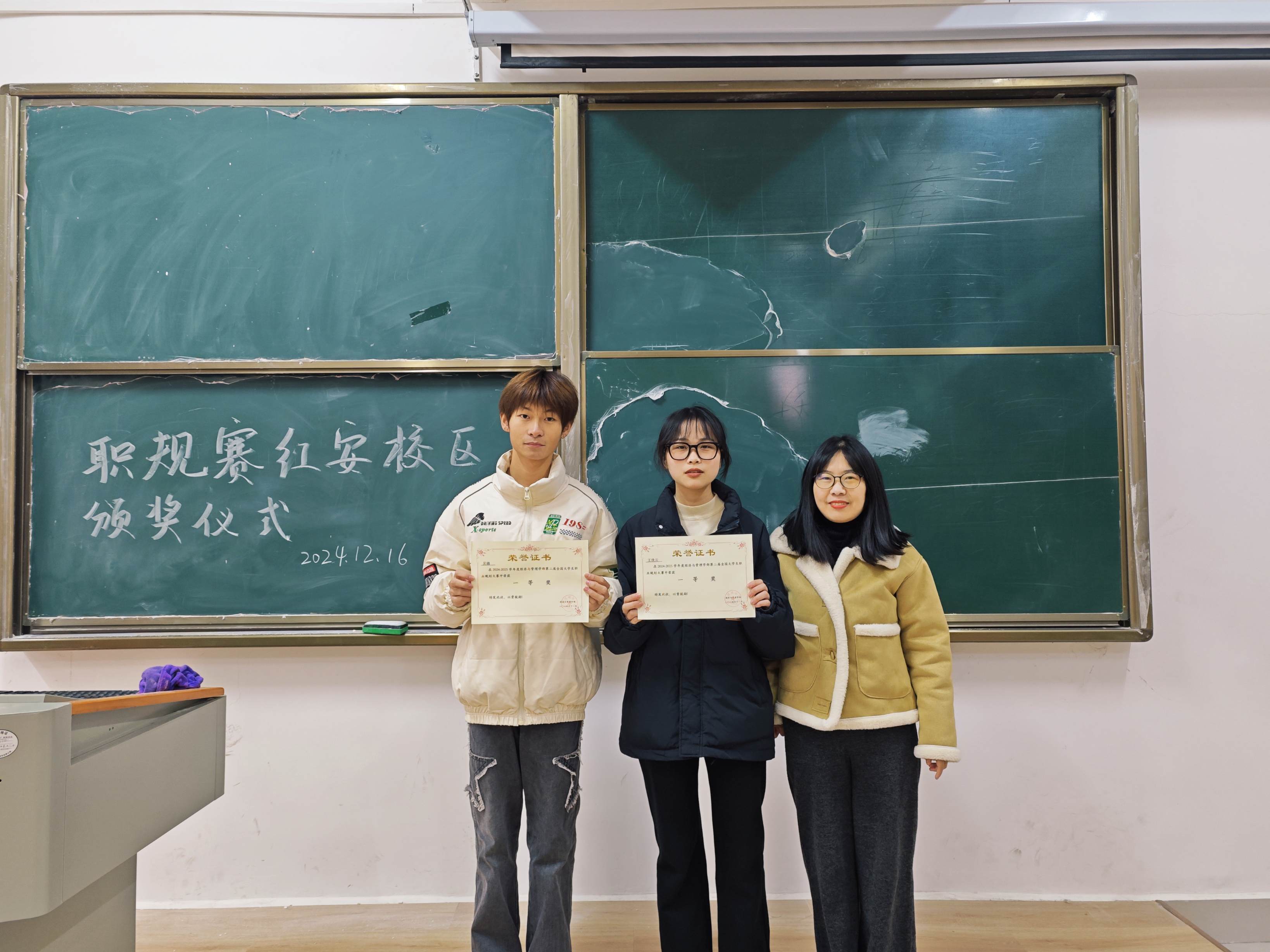 周雅乔、钱梦迪老师依次为获奖学生颁发奖状。每一份奖状都承载着学生们的努力与付出,也见证了他们在职业规划道路上的成长。