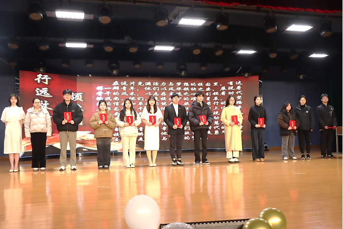 本次大会揭示了3个奖项,分别是“青衿向学奖”,共有8名同学荣获此奖,该奖项寓意学术精深,才华斐然,象征学术科研,终成大器。“行远致新奖”,共有12名同学荣获此奖,该奖项寓意实践创新,行稳致远,象征实践有为,回馈社会。“风华领袂奖”,共有19名同学荣获此奖,该奖项寓意彰显骨干风范,志存高远,体现学生干部引领风尚、卓尔不群。