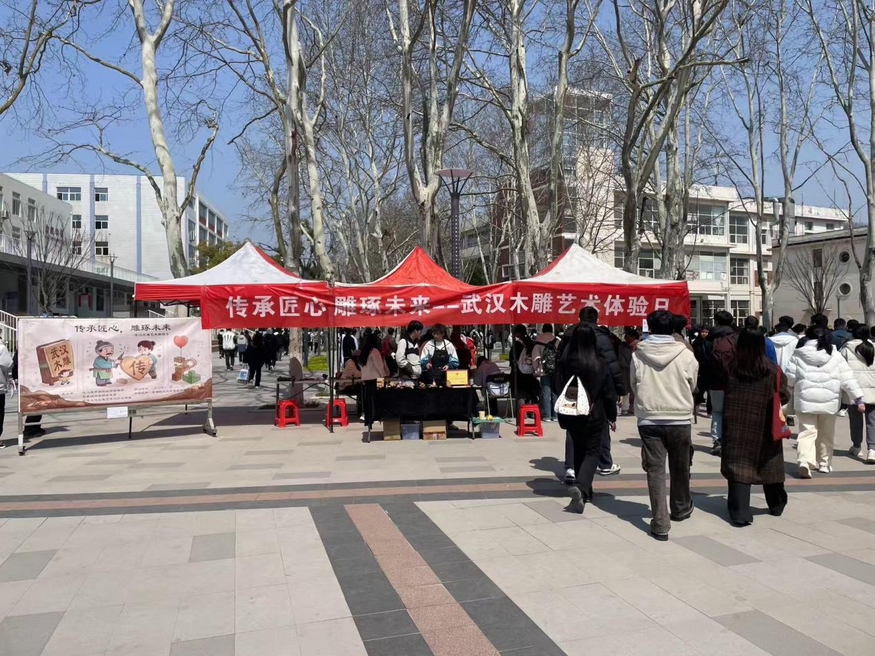 新闻网讯(记者 唐欣)3月19日,我校社团管理部艺术与设计学部学生会非遗文化创意艺术设计工作室,在东湖校区大食堂前空地成功举办了一场主题为“传承匠心,雕琢未来”的武汉木雕艺术体验日。此次活动旨在让同学们深入了解并亲身体验武汉木雕的独特魅力,同时传播和保护这一珍贵的非物质文化遗产。