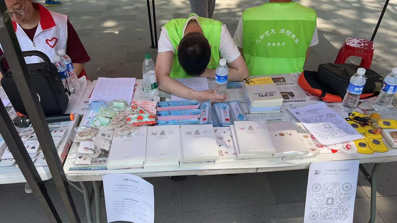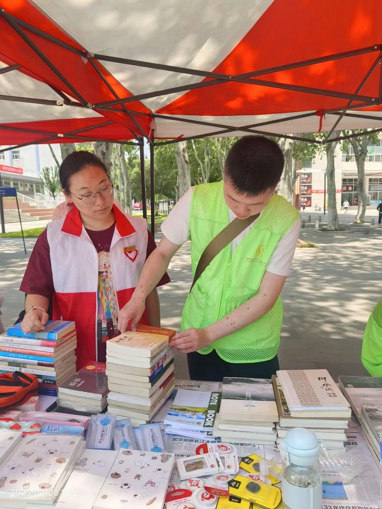 在活动现场,同学们的参与热情高涨。大家纷纷带着自己闲置的课外阅读书籍来到捐赠点,文学名著中细腻的情感、历史典籍里厚重的故事、科技科普读物中奇妙的知识、职业与成长类书籍里实用的经验,都随着一本本摆放整齐的书籍汇聚起来,逐渐“汇集成海”。这些书籍不仅是知识的载体,更承载着同学们对自闭症儿童满满的关爱。为了进一步鼓励同学们积极参与到这场爱心活动中来,大学生青年志愿服务总队也精心设置了奖励机制。丰富的兑换选择大大激发了同学们的热情,让活动现场气氛持续升温。