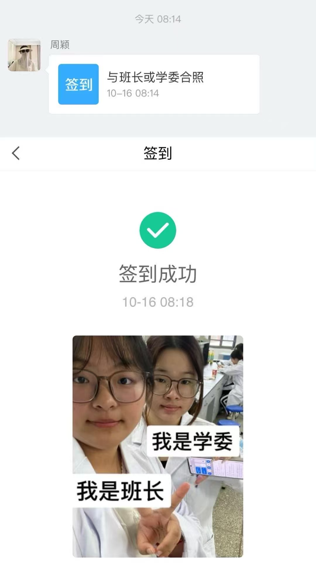 2023级医学部应用化学1班班长肖诗婷表示:“这种方式太有趣了!相比常规的定位签到,拍照互动让我们每个人都成了课堂的‘主角’,大家参与的积极性特别高。”