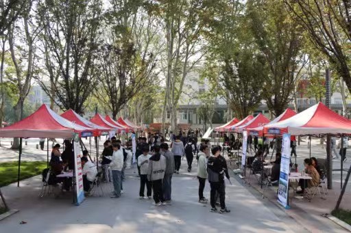 新闻网讯(记者 闻世俊 尹耀清)11月5日下午,我校大食堂前广场上热闹非凡。由“玉出昆岗 高新共享”昆山高新区人力资源社会保障局主办的专场招聘会在此盛大启幕。本次专场招聘会共有8家企业参与,提供岗位200多个,共收取简历130多份,53名毕业生与企业达成了初步就业意向。