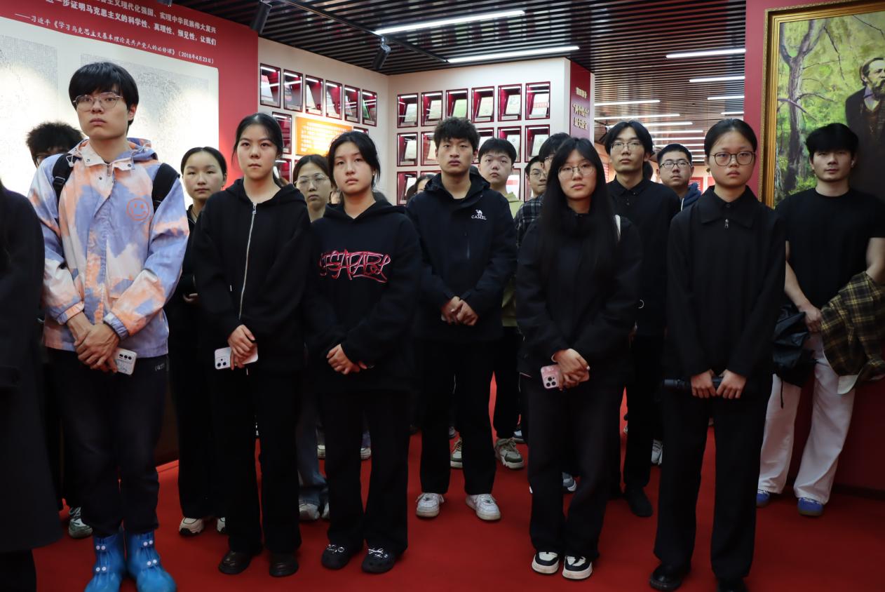 展览现场,在华中师范大学马克思主义学院专业讲解员的引导下,师生开启了一场深刻的马克思主义思想溯源之旅。展览现场,在校方专业讲解员的引导下,学员们神情专注,时而用手机记录展览资料,时而参与交流讨论,从泛黄珍贵的手稿到厚重的经典巨著,认真学习每一件展品背后波澜壮阔的历史和历久弥新的思想,全面深入地开启马克思主义思想溯源之旅。