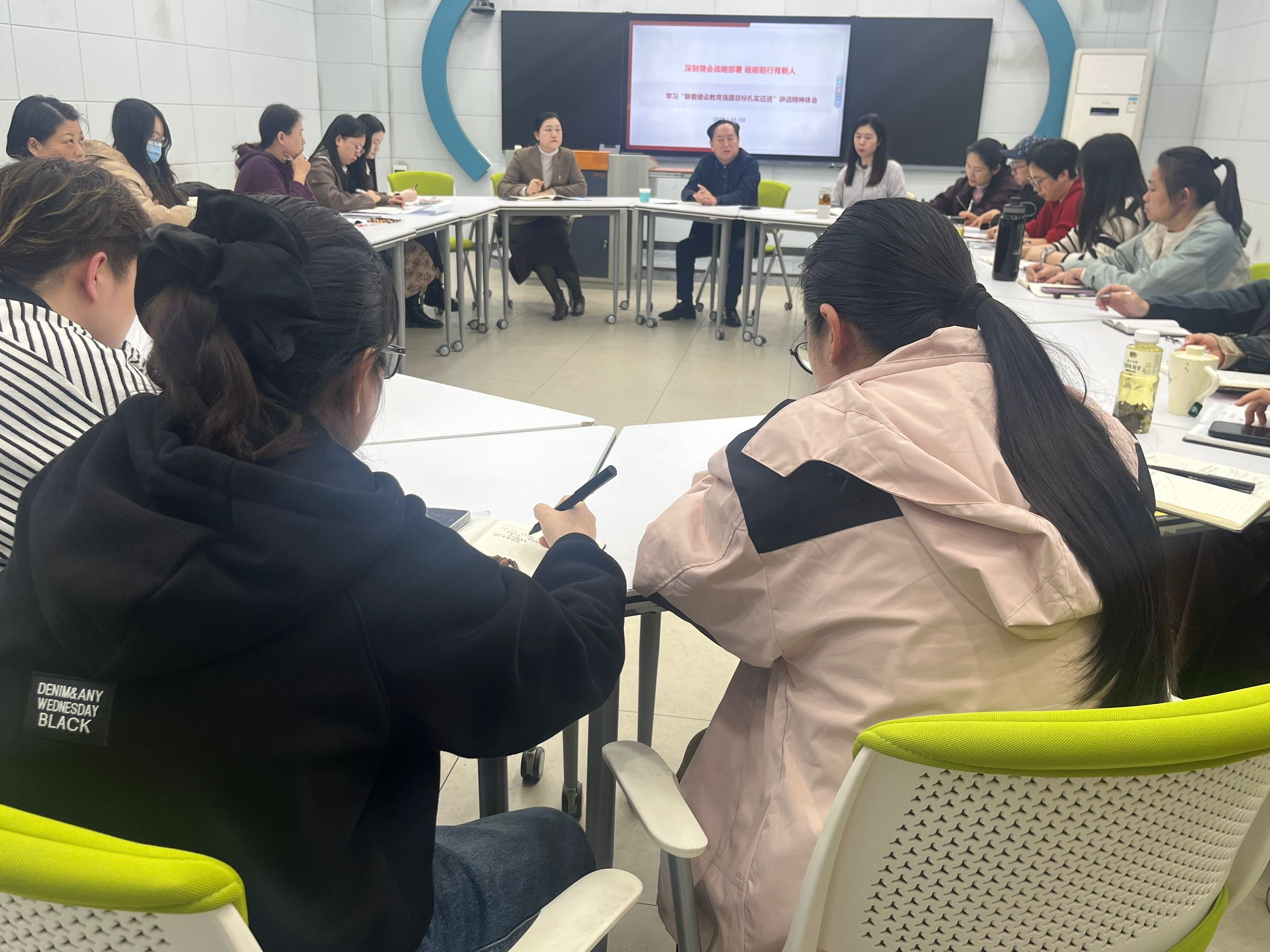 他指出,教育强国是实现中华民族伟大复兴的关键战略目标,具有基础性、先导性和全局性作用,必须从政治、思想和行动上深刻认识其重要性。推进教育高质量发展需坚持正确政治方向,坚持党对教育工作的全面领导,聚焦立德树人根本任务,培养德智体美劳全面发展的社会主义建设者和接班人。深化教育改革创新,破除体制机制障碍,推动教育治理现代化。图书馆要立足“每一个资源的精心采购”、“每一个空间的用心营造”、“每一场活动的精心策划”、“每一次咨询的耐心解答”,将理论学习成果深度转化为岗位服务实效,从资源建设、空间打造、活动策划到咨询服务,以精细化举措筑牢育人阵地,用实际行动诠释“读者第一,服务育人”的工作宗旨,为师生成长成才提供有力支撑。