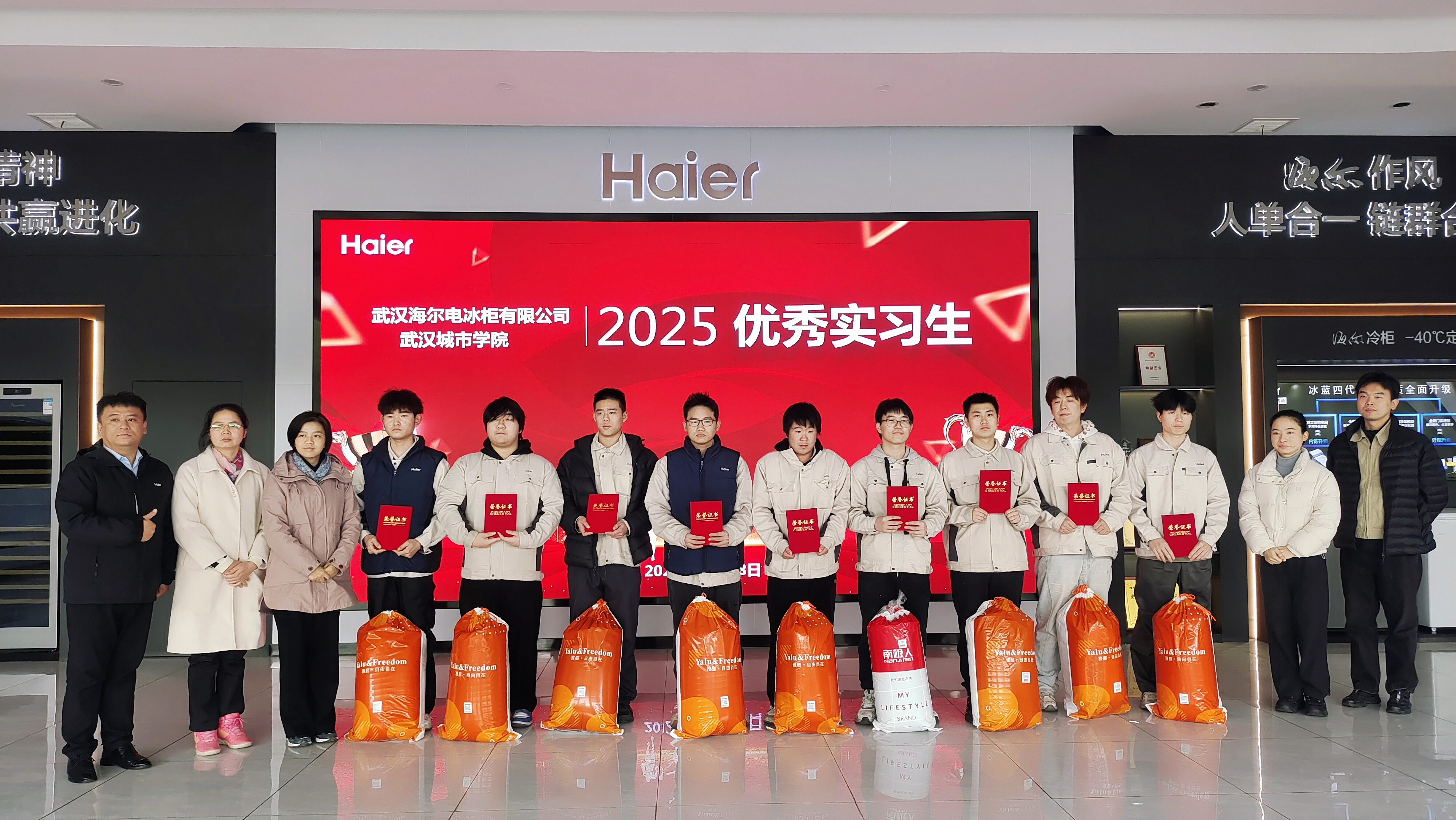 副书记吴琼一行与武汉海尔就双方联合申报的就业实习基地建设项目推进,以及实习生培养、校企合作升级等核心议题展开了深度交流,旨在以优质项目为依托,进一步构建校企协同育人的长效机制,实现人才培养与企业需求的精准衔接。并在会后为8位优秀实习生颁发荣誉证书,同时为每位同学送上精心准备的被子,让异乡实习的学子们感受到家一般的温暖。“这份荣誉是认可更是动力,我们一定不辜负学校和企业的期望。”优秀实习生代表陶佳琦接过证书时坚定地说。