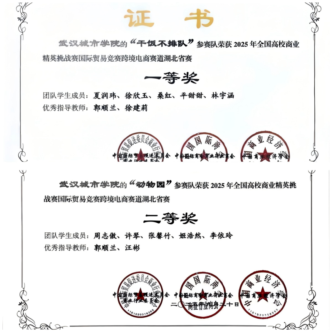 新闻网讯(通讯员 郭顺兰 许琴)近日,备受瞩目的全国高校商业精英赛跨境电商赛道全国总决赛圆满落幕。由经济与管理学部周志傲、许琴、姬浩然、李依玲、张馨竹组成的“动物园”团队以及由夏润玮、徐欣玉、平甜甜、林宇涵、桑红组成的“吃饭不排队”团队,在指导教师郭顺兰的悉心带领下,凭借扎实的专业功底、创新的运营策略与出色的现场表现,从全国近200所高校的超2000支参赛队伍中脱颖而出,最终斩获全国二等奖,为学校赢得了荣誉。
