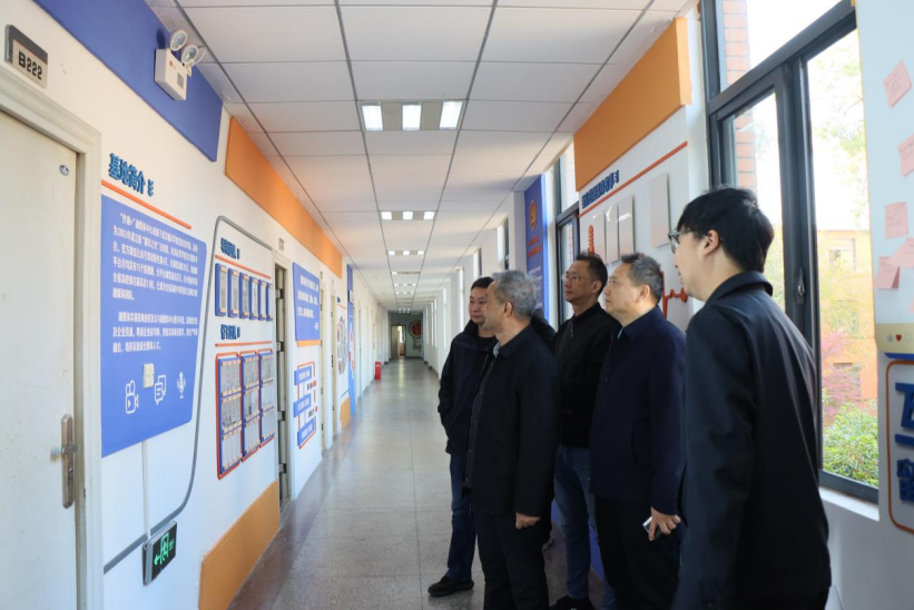 在校友会副会长孙迅的陪同下,校领导一行实地察看了基地文化墙及创业孵化区。孙迅重点汇报了基地实训体系建设、创业人才培养成效及合作资源拓展情况,目前基地已与多家国企央企建立稳定合作关系。