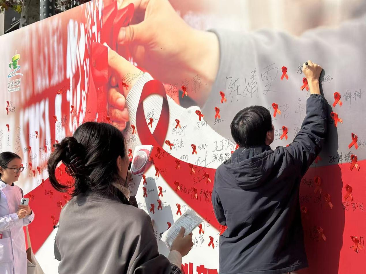 新闻网讯(高级记者 唐欣 洪菲霞)2025年12月1日是第38个“世界艾滋病日”。为积极响应“社会共治,终结艾滋,共享健康”的年度主题,我校学工处、校团委牵头主办,联合东湖风景区公共卫生服务中心,在东湖校区学子食堂门口的操场成功开展“红丝带暖校园,防艾知识共传递”主题宣传活动。