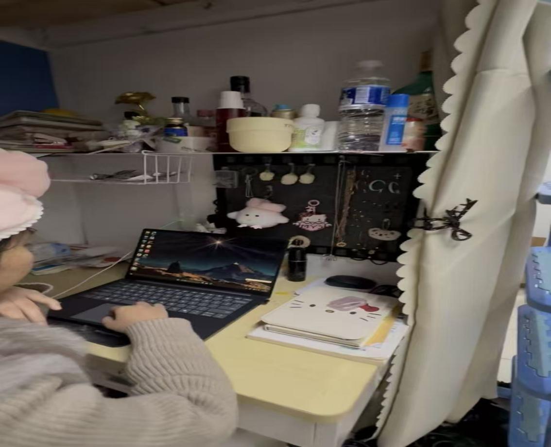 学习之时,她们同样全神贯注。在台灯的暖光下,有人戴着发带敲击键盘赶写报告,有人趴在桌上用荧光笔标记重点。写报告的同学遇到数据卡顿,起身轻碰了下对面铺位的室友胳膊,对方会立刻放下笔,凑到屏幕前,指尖点着笔记本上荧光笔标记的公式,小声帮她理清了逻辑。而零食共享箱里的甜蜜味道、攻克难题时的“头脑风暴”、生日惊喜派对上的欢声笑语,以及室友情绪低落时的奶茶与拥抱,这些珍贵的“闺蜜时刻”,让寝室成了一个分享快乐、治愈情的温暖港湾。