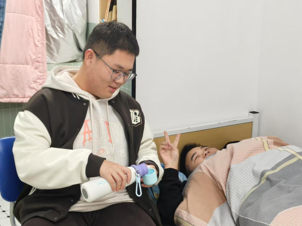新闻网讯(记者 闻世俊)“最近,我和室友做了一个‘特别决定’——一起搬到了一楼。”这一切,源于室友刘庆宣下楼梯时不慎跌倒,让他成了北九232寝室最让人牵挂的人。从宿管阿姨递来的钥匙,到室友们每日的悉心照料,再到辅导员始终在线的关怀,这场临时的“换寝”背后,是一场温暖的爱心接力,他们用行动诠释了校园里的真情。
