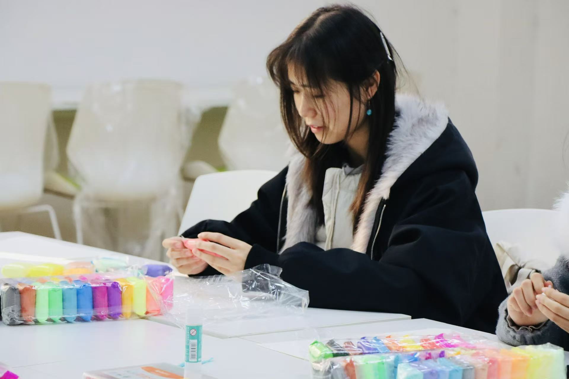 12月8日,粘土活动率先开始。汪秋霞老师凭借丰富的教学经验和精湛的技艺,引导同学们将手中的粘土揉捏成各种栩栩如生的造型。在轻松愉悦的氛围中,同学们沉浸于手工创作的乐趣。来自 2023 级国贸 1 班的桑红同学对此次活动赞不绝口,她表示:“粘土活动不仅锻炼了我的动手能力,更让我在创作过程中找到了内心的宁静,仿佛所有的焦虑都被揉进了粘土里,随着作品的完成而消散。”