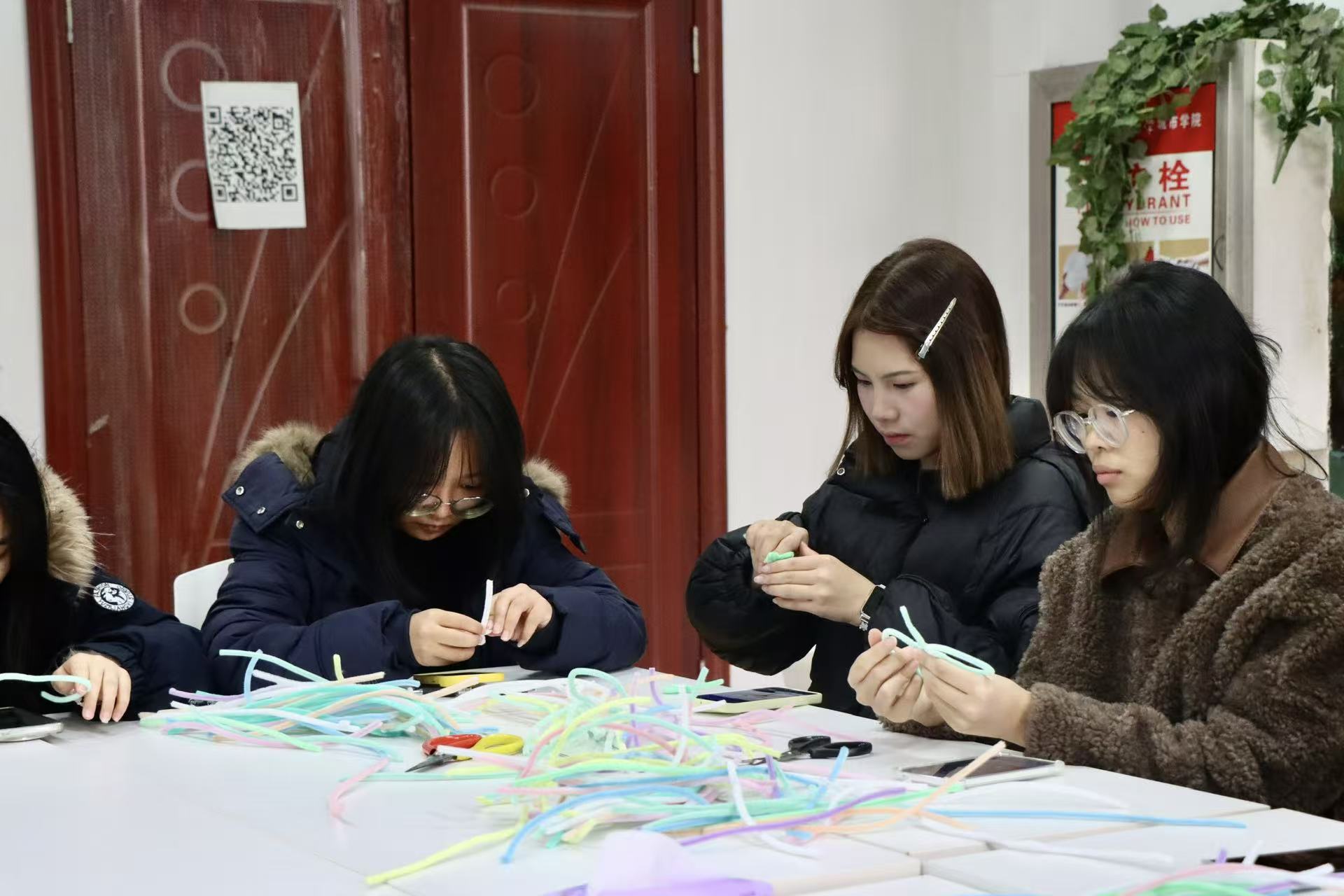 12 月 12 日的扭扭棒活动则充满了创意与趣味。陈玉娟老师巧妙地将扭扭棒的制作技巧与创意设计相结合,激发了同学们的想象力和创造力。同学们用扭扭棒制作出各种精美的造型,从动物到植物,从抽象到具象,展现了丰富的创意。2025 级会计 6 班的冯丽娜同学表示:“通过扭扭棒活动,我不仅学会了如何制作各种有趣的造型,还收获了许多手工制作的小技巧。这些技能让我在活动中找到了成就感,也让我更加自信。”