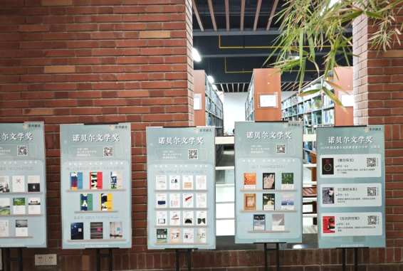 新闻网讯(通讯员 何臣兢 刘婷姿 )12月9日,“诺贝尔文学奖书籍展览”在图书馆一楼中庭正式开放。本次展览采用“展架+二维码”的创新形式,集中呈现百余位诺贝尔文学奖得主的代表作品。从大江健三郎《个人的体验》到拉斯洛《撒旦探戈》,读者通过扫描展区设置的统一二维码入口,即可在线访问相关电子书、有声读物,在移动端体验沉浸式文学阅读。