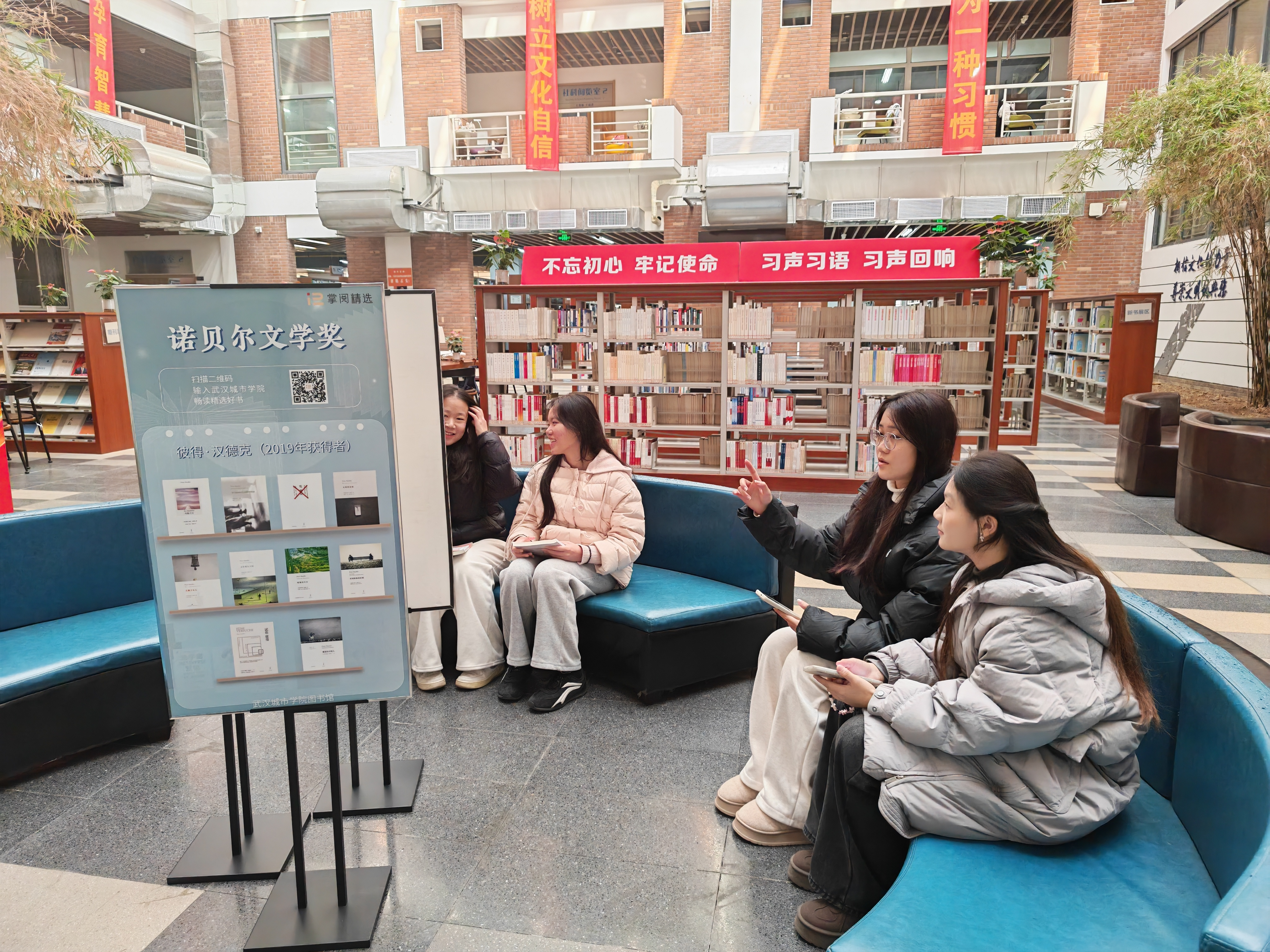 2025级城乡规划一班的魏莉在体验后说:“扫码就能直接看到这么多诺奖作品,挺方便的,比找纸质书快。我刚刚扫码试听了《百年孤独》的有声书,感觉经典作品以这样的方式呈现,更贴近我们的阅读习惯。”