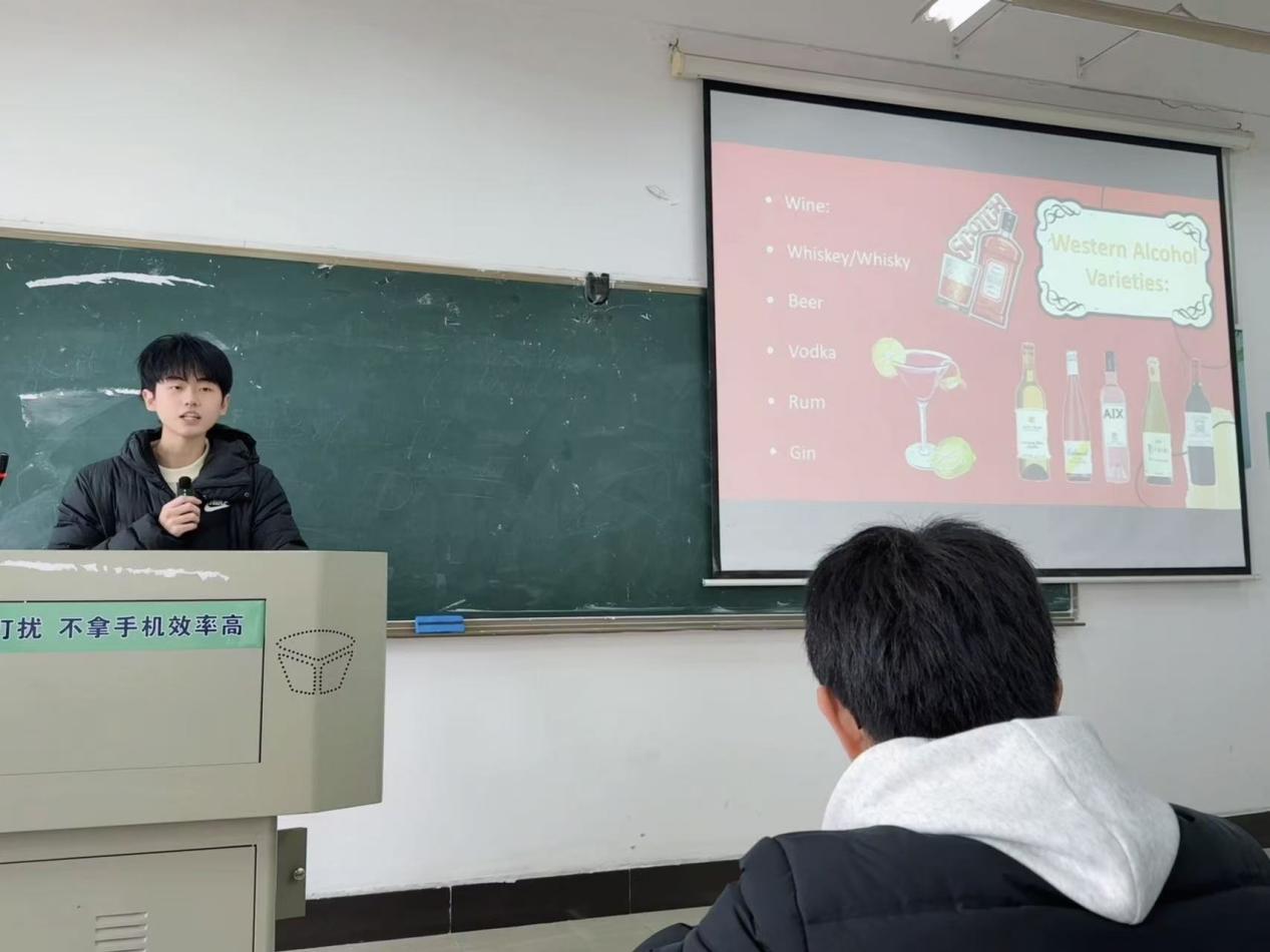 新闻网讯(记者 王奕 邹灿),“碰杯时酒杯要比长辈低半寸,这是中国酒桌的‘隐藏礼仪’!”“西方品酒更像‘盲盒体验’,重点是感受果香和单宁” 近日,我校2025级财管一班的英语课堂上,杨炅同学站在讲台中央,用中英双语把中西方酒文化讲得绘声绘色。