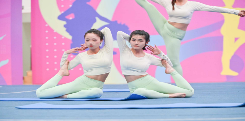 瑜伽项目里,队员们在平衡支撑与延展拉伸中凸显“以器助美”的巧思,在呼吸与肢体的精准配合中传递出“静中有韧、柔中带刚”的东方美学意境。