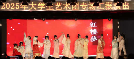 新闻网讯(记者 张含玥)12月19日晚,由学工处、校团委主办、大学生艺术团承办的“艺韵燃动青春 梦想点亮未来”专场汇报演出在我校大学生活动中心精彩上演。本次活动不仅充分展现了我校学子的艺术才华,丰富了校园文化生活,也为校园增添了浓厚的艺术氛围。