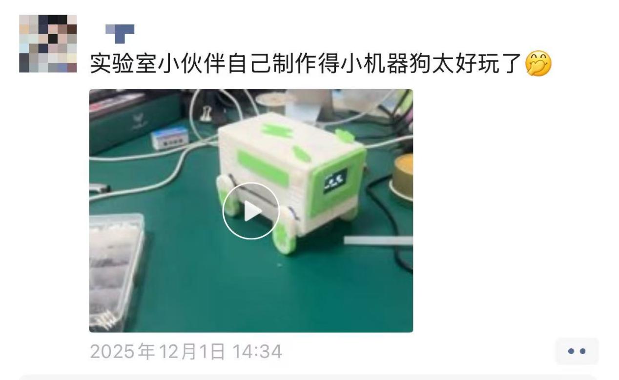 “我们最初就是想找个硬件控制类的项目练手,把理论变成实物。”杜恬跃介绍,他们通过对比多个开源项目,最终选择了一套对新手友好、教程完整的机器狗制作方案。“从零开始,跟着教程一步步搭建,第二只还升级了指令反馈,加入了唱歌功能。”